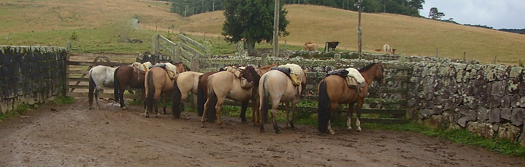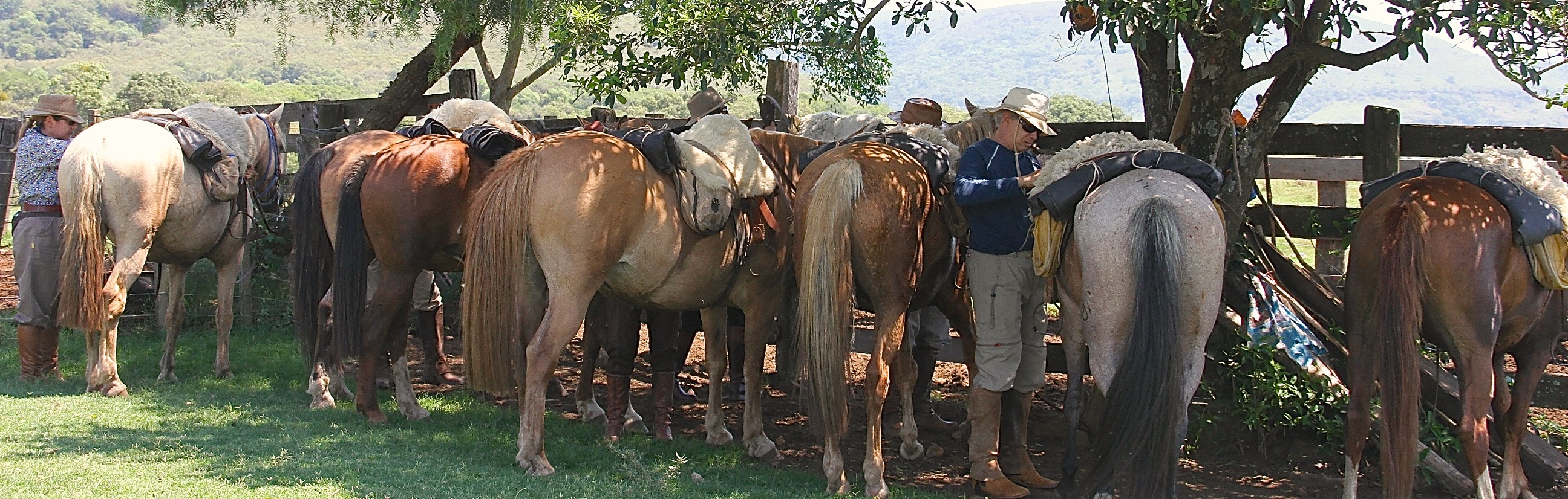 O manejo dos cavalos é responsabilidade nossa, que tratamos, encilhamos e desencilhamos os cavalos antes, durante e depois da cavalgada de cada dia.