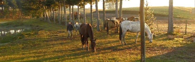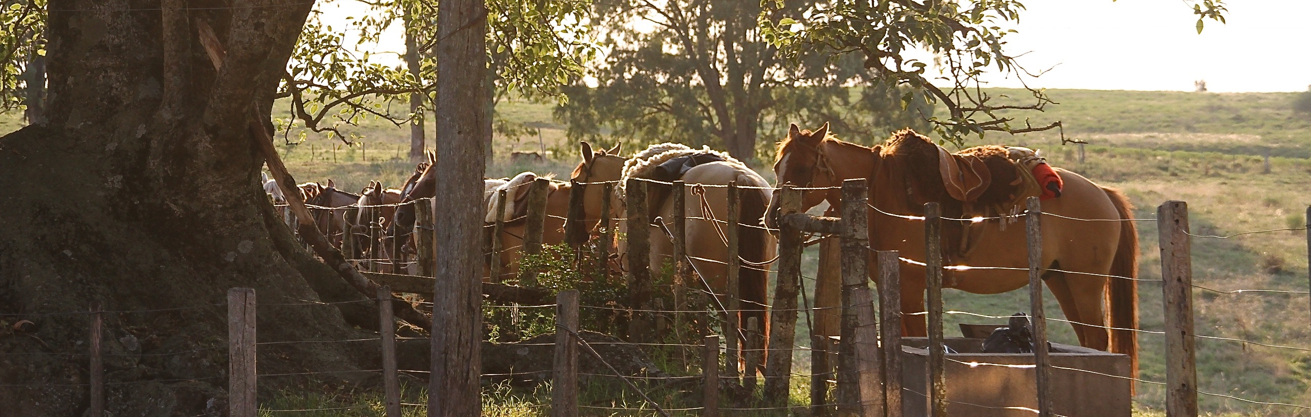 Nossos animais vivem livres a campo (fora!) – o ideal para qualquer cavalo – e mantidos exclusivamente para as cavalgadas; em todas as pousadas e fazendas que usamos existe área adequada para soltá-los e instalações para o manejo de cada dia.